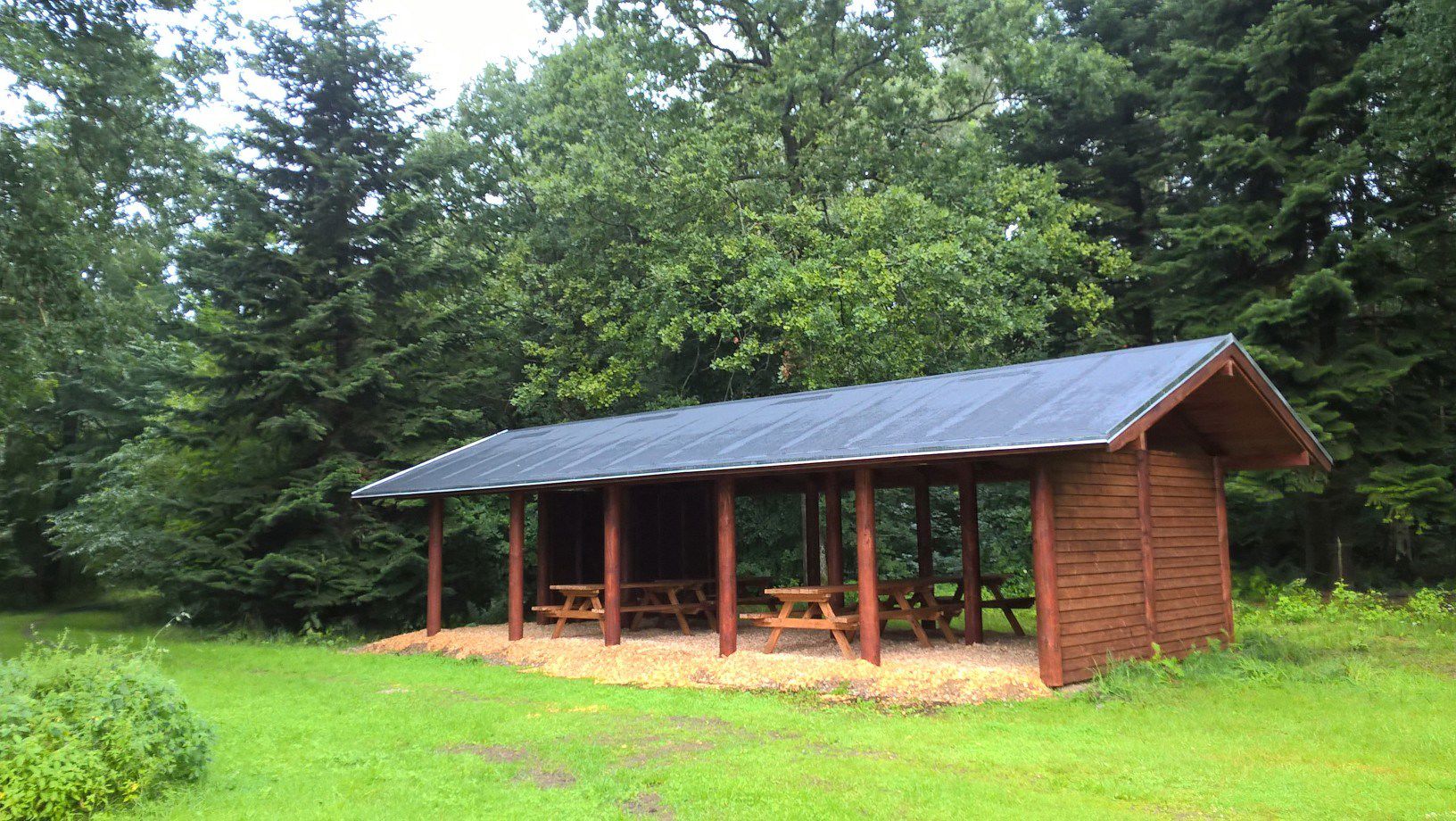 Der er et stort madpakkehus og flere bålsteder.