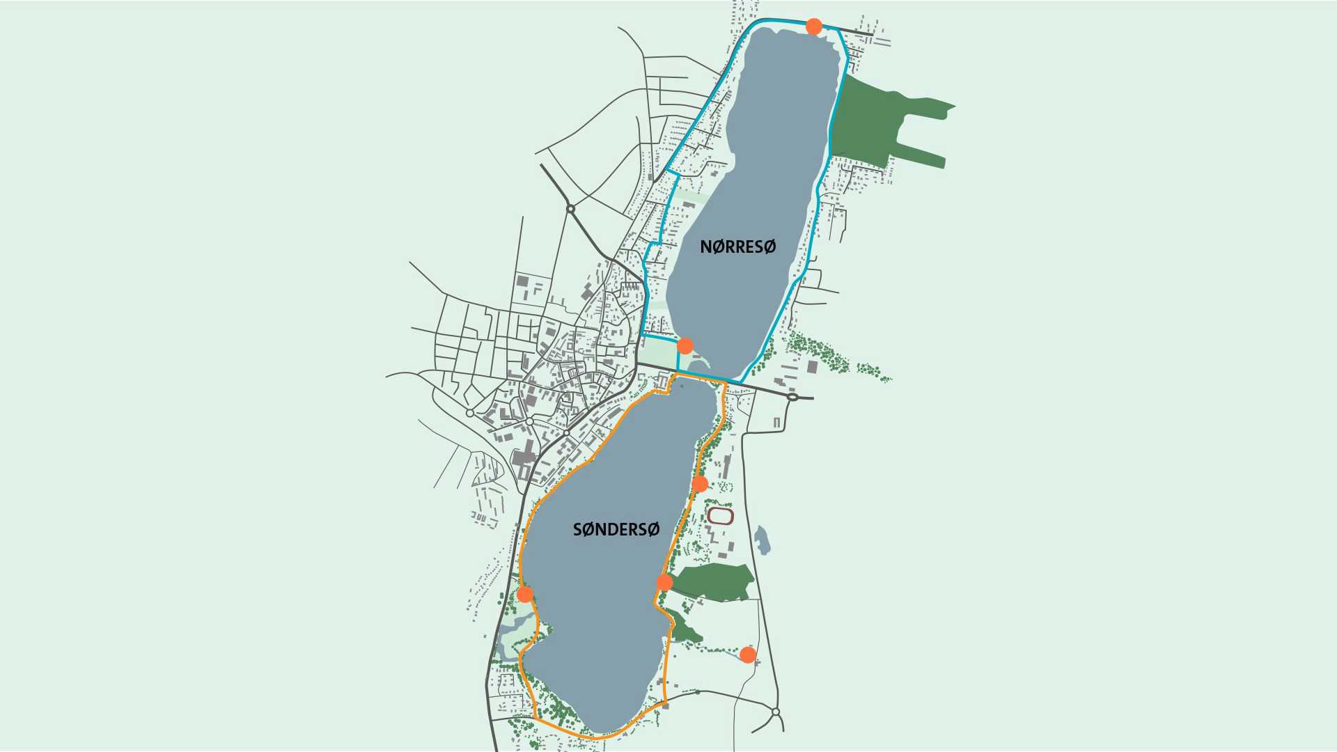 Tag en tur rundt om Viborgsøerne på gåben eller på cykel. Du kan opleve både historiens vingesus og naturen på tæt hold. Der er 5,6 km rundt om Søndersø og 5,7 km rundt om Nørresø.