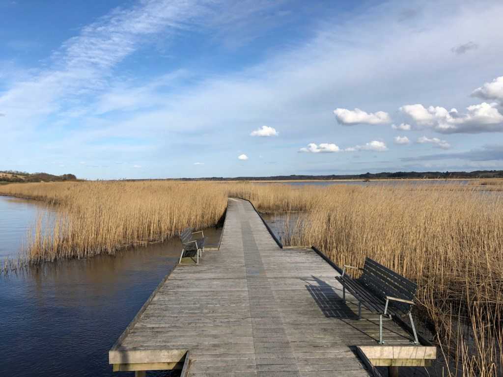Viborg Kommune har etableret en flot natursti på dæmningen langs Skals Å mellem Løgstørvej og den gamle jernbanebro - nu en del af Himmerlandsstien - over Skals Å ved Hjarbæk Fjord.