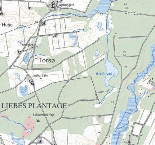Bredmosen ligger i Liebes Plantage umiddelbart nord for Stoholm.
