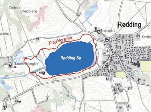 Rødding Sø ligger umiddelbart vest for Rødding.
