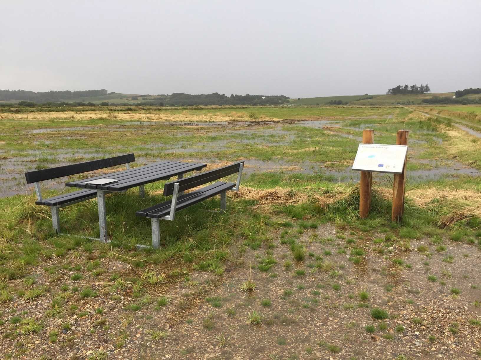 Ved enden af markvejen er der opsat en informationstavle for vådområdeprojektet, og der er mulighed for parkering.