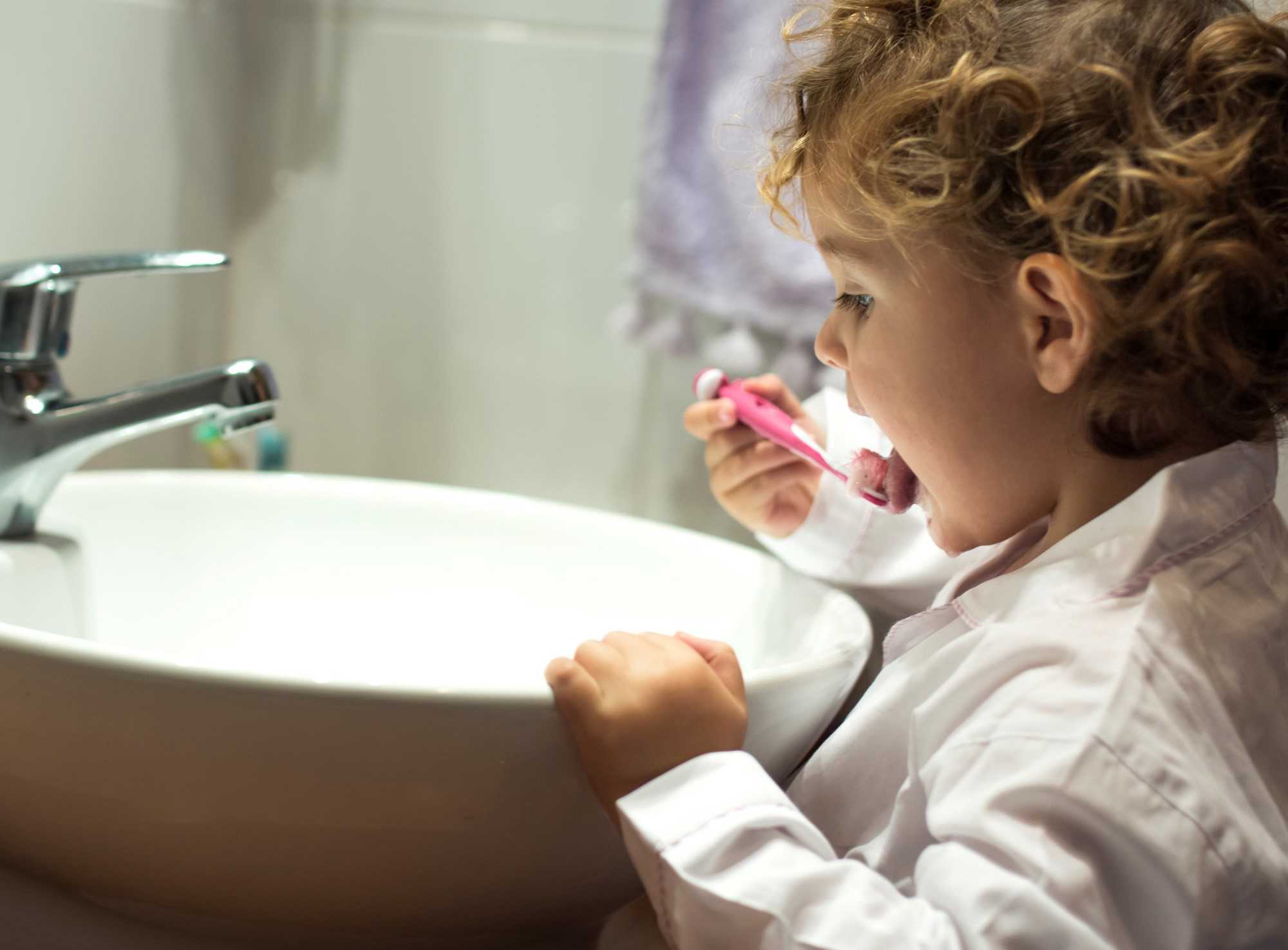 - Efter tandbørstningen kan barnet spytte ud, men ikke skylle med vand. Så virker tandpastaen længere og bedre.